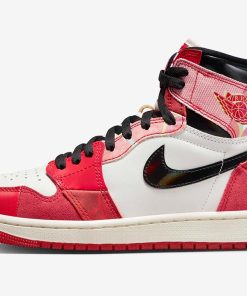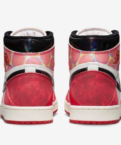 The design of these limited edition sneakers draws inspiration from the original Air Jordan 1 Chicago colorway but incorporates elements that mimic the animation style of Miles Morales/Spider-Man from the movie “Spider-Man: Across the Spider-Verse. Various high-quality materials, including leathers, suedes, and other premium fabrics, are used to construct the uppers of the shoes.