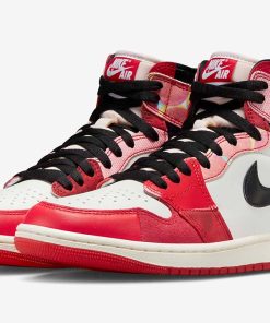 The design of these limited edition sneakers draws inspiration from the original Air Jordan 1 Chicago colorway but incorporates elements that mimic the animation style of Miles Morales/Spider-Man from the movie “Spider-Man: Across the Spider-Verse. Various high-quality materials, including leathers, suedes, and other premium fabrics, are used to construct the uppers of the shoes.
