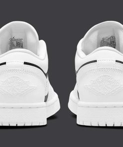 It presents itself as an inversion of the two aforementioned releases, with just black uppers met by piercing white overlays ?? both in a simple leather construction. Nylong tongues, laces, liner, and sole units arrive completely drenched in white, while branding at the tongue is stitched in black. Completing the design is a set of black insoles, and tonal Wings embroidery in the rear.