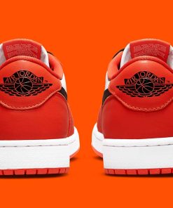 The Air Jordan 1 Low Starfish features a smooth white leather upper with black Swooshes and sharp Starfish overlays, similar to the color uniform Michael Jordan wore when he famously broke the backboard in a 1985 exhibition game in Italy. A matching woven tongue label adds to the designs retro appeal.