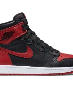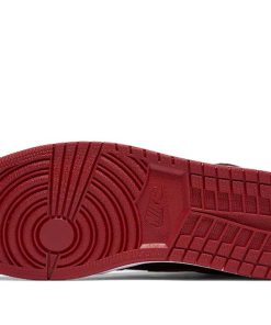 The Air Jordan 1 Bred 2016 featured a black and Varsity Red leather upper with Swoosh overlays and Wings logo detailing at the collar. Vintage-styled Nike Swoosh woven tongue tags add a classic feel. From there, a white and red Air sole completes the design.