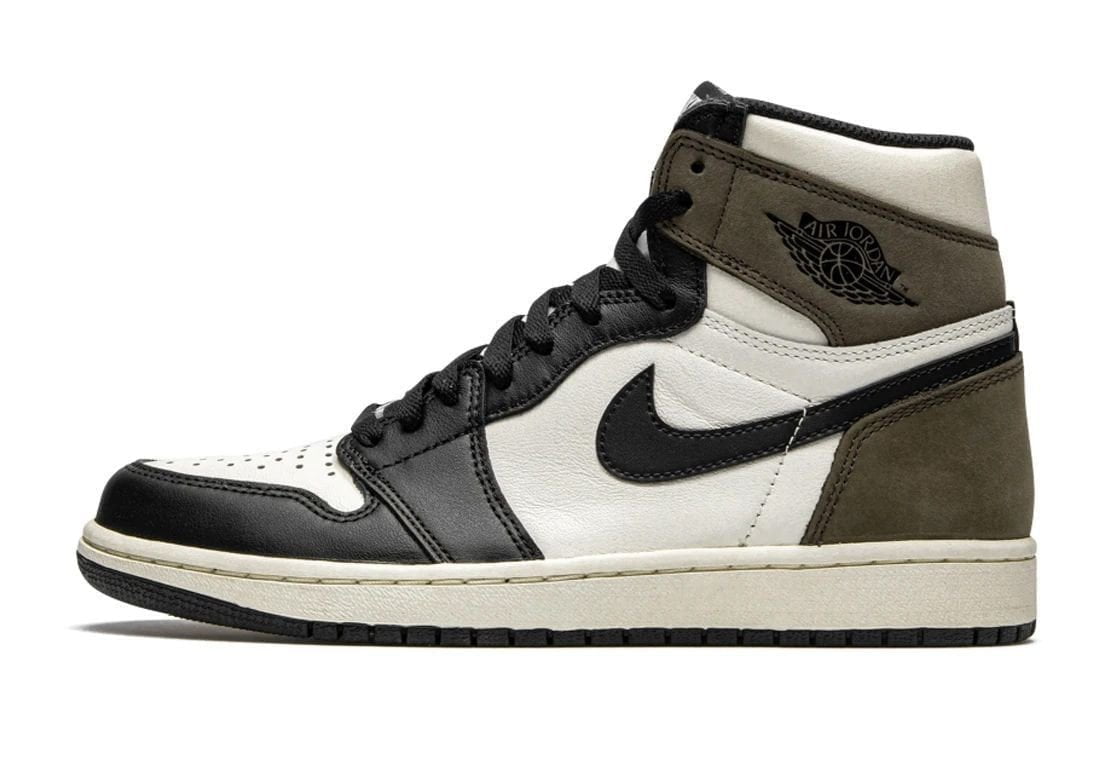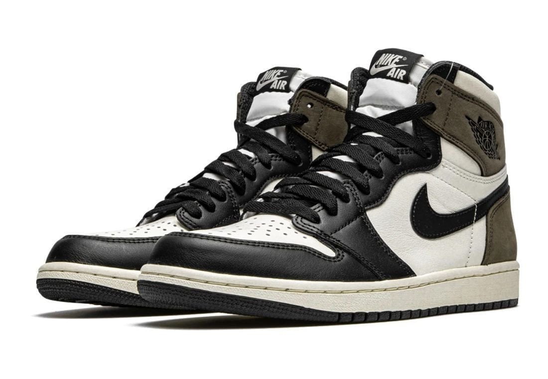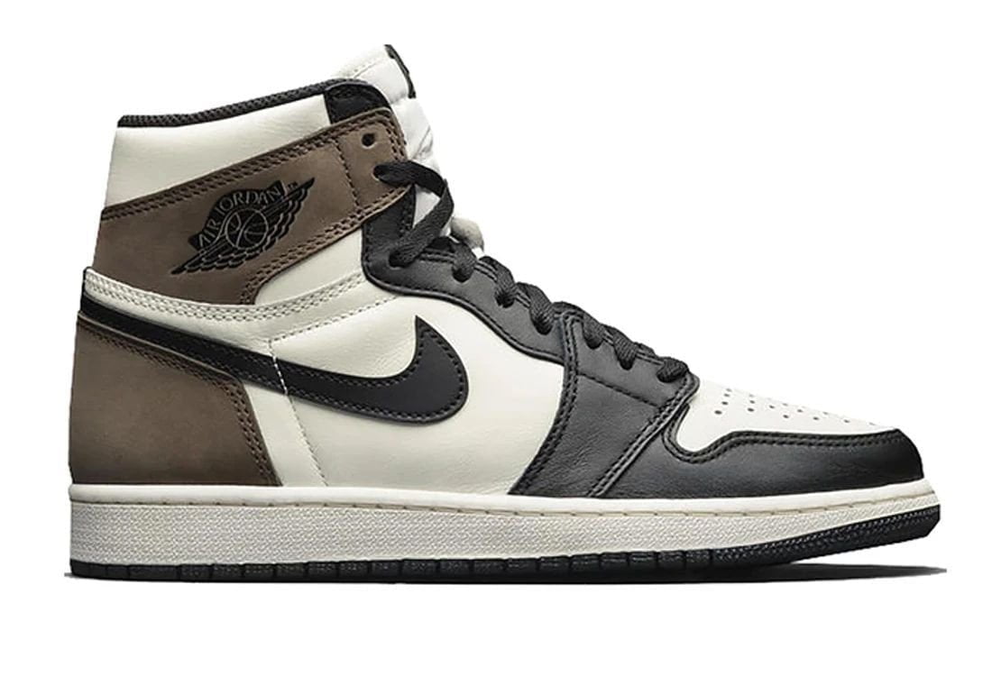 The upper of the Jordan 1 High Dark Mocha features a Sail leather base with black leather surrounding the toe box and Mocha suede on the heel and ankle. A black leather Swoosh, Jordan Wings logo on the ankle, and Nike Air branding on the tongue pay homage to the brand that can be found on the original 1985 Jordan 1. A Sail midsole and black outsole complete this Black Toe design.