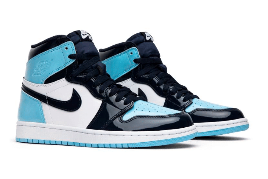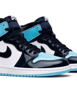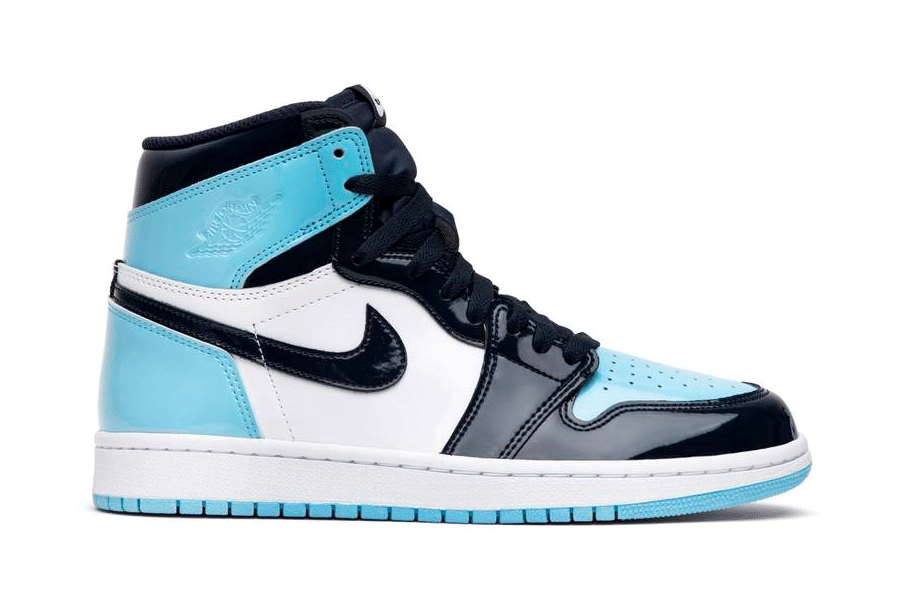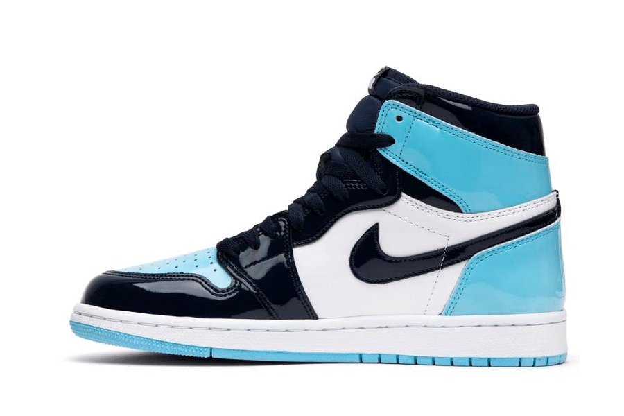 The Womens Air Jordan 1 Retro High OG ‘Blue Chill features a patent leather upper in Blue Chill and white with Obsidian overlays throughout. Released February 2019, the colors are inspired from Michael Jordans roots in North Carolina as well as the NBA All-Star host city Charlotte.
