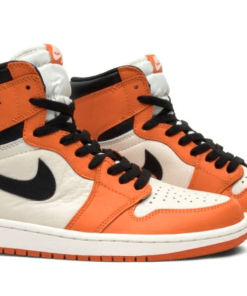 In 1985 on a Nike Europe tour, Michael Jordan shattered a backboard when throwing down a monstrous dunk while wearing an orange, black, and white uniform. Commemorating the moment and uniform, a 2015 Air Jordan 1 ‘Shattered Backboard (aka ‘Shattered Backboard 1.0) sneaker was released. Shortly after in the Fall of 2016, an Air Jordan 1 ‘Shattered Backboard Away (aka ‘Reverse and ‘Shattered Backboard 2.0) was released. This sneaker keeps the black laces and Nike branding, but swaps out the orange toe box and black around the toe and tongue for white.