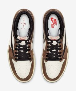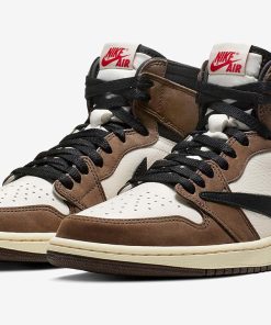 Grab a pack of coffee beans to match the Jordan 1 Retro High Travis Scott. This AJ1 comes with a brown upper plus white accents, black Nike “Swoosh, sail midsole, and a brown sole.