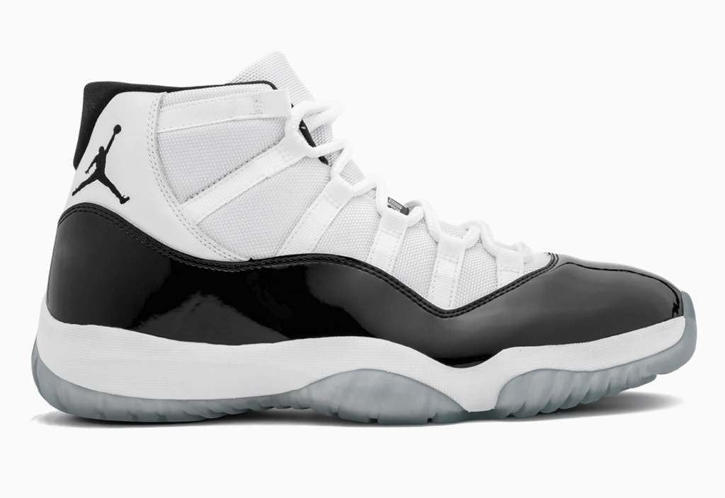 Jordan Brand is reaching harder than MJ on Space Jam for the sneaker of the year crown by releasing the Jordan 11 Retro Concord (2018). This Iconic Jordan 11 colorway is showcasing a white upper with black accents, white midsole, and a freezing cold translucent sole. These sneakers released in December 2018