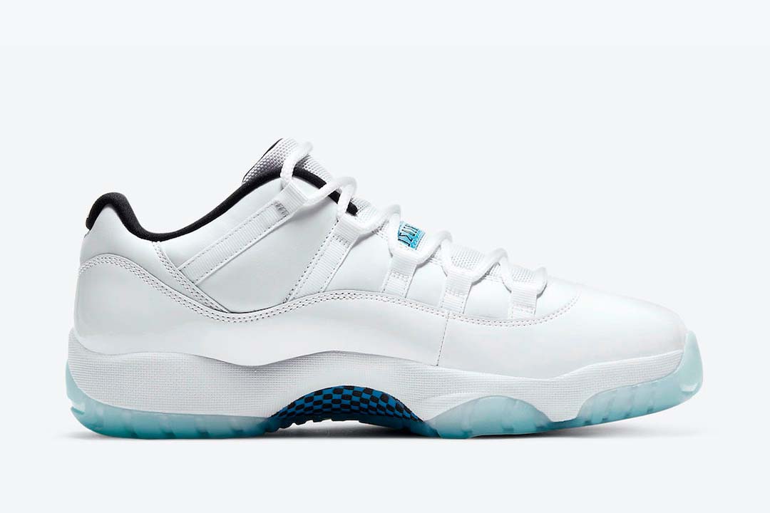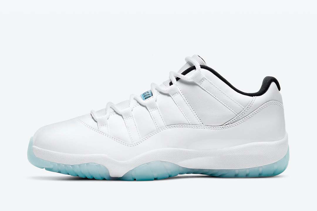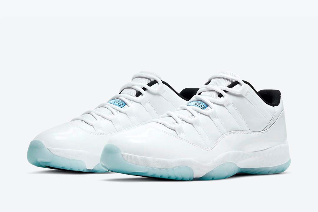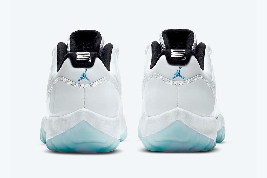 Michael Jordan debuted the Legend Blue 11 in the 1996 All-Star Game after returning from his first retirement, securing the sneakers immortality, but that heritage got an update in 2021 with the Air Jordan 11 Low Legend Blue.The Air Jordan 11 Low Legend Blue features an all-white upper constructed of smooth leather and patent leather. Jumpman and 23 insignias are displayed on the back of the ankle. A white midsole and an icy translucent outsole complete the design.