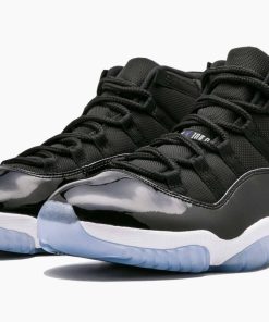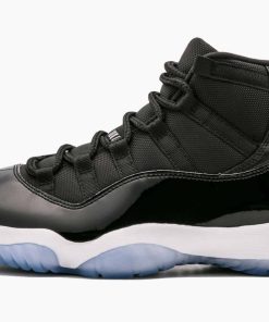 With the Jordan 11 Retro Space Jam release, movie fans finally got the chance to try on the player-exclusive sneaker that was originally worn by Michael Jordan in Space Jam, as well as during the 1995 NBA Playoffs. This 20th Anniversary retro exchanges the original #23 stamp on the heel and replaces it with Jordans return number, #45. The entirely black upper shines with its patent leather black mudguard, laces, and tongue. The Jumpman logo appears on the shoes side ankle in a Royal Blue. Holding the entire design up is a bright white midsole paired with a semi-translucent outer sole. These coveted sneakers were released as an early Christmas present to Space Jam fans on December 9th, 2016.