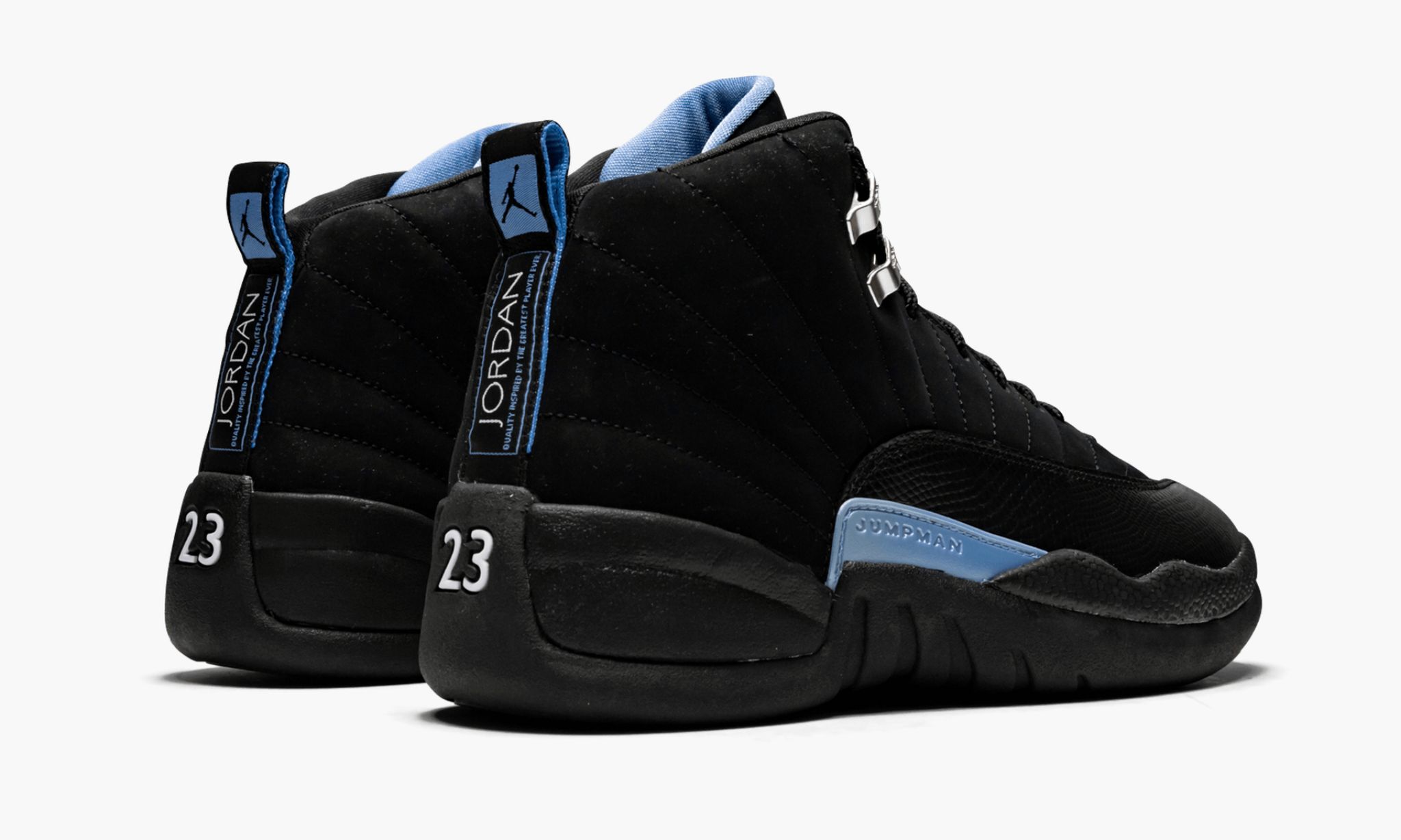 The Air Jordan 12 is a unique colorway that digs deep into Japanese culture. Inspired by the Nisshoki, both the Japanese flag and a trademark womens shoe, the Air Jordan 12 Retro ‘Nubuck 2009 features a black nubuck upper with quilted details on the sidewall. The sneaker also boasts Carolina Blue accents and a white 23 inscribed at the heel.