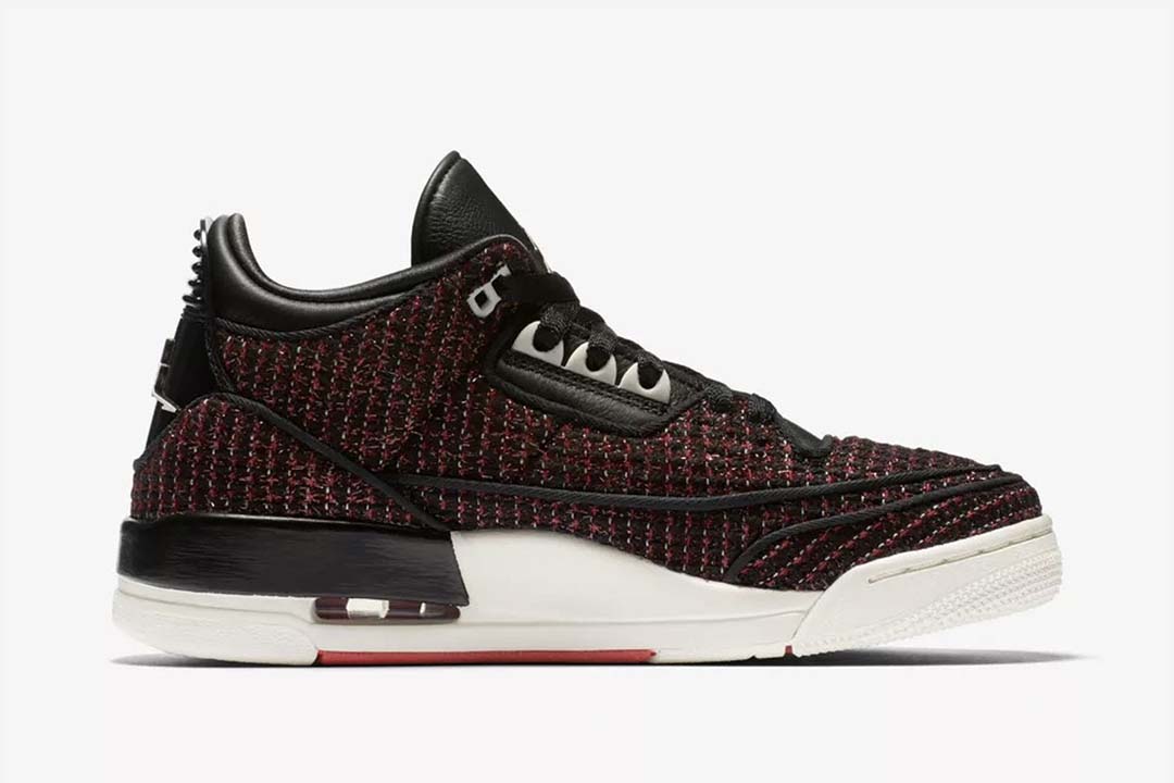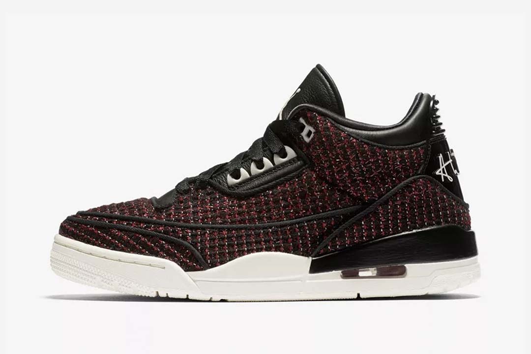 The womens Jordan 3 features a unique tweed construction inspired by Vogue Editor-in-Chief Anna Wintours well-known affinity for tweed suits. This red edition has a red and black tweed upper with premium leather detailing. Sail accents are applied to the TPU lace eyelets, branding, and midsole. Wintours famous sign-off for all Vogue projects, AWOK, which stands for Anna Wintour OK, is found on each heel tab to complete the striking design. Desired by fashion aficionados and Air Jordan collectors alike, the limited edition Vogue x Air Jordan 3 AWOK Red is one of the most important Air Jordan 3 releases time.