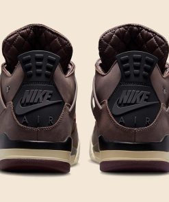 Dressed in a Violet Ore, Medium Ash, Black, Muslin, and Burgundy Crush color scheme. The A Ma Mani??re x Air Jordan 4 features a muted Purple base atop a Cream rubber sole. Other details includes Nike Air heel tabs, polished branded emblem on the lateral collar, quilted sockliner and insoles. Its about where youre going and Its not about the shoes text is hidden behind the back pull tabs, co-branded tongues, hangtags, and special packaging completes the design.