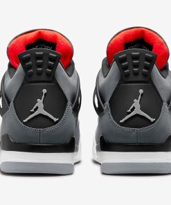 The Jordan 4 Retro Infrared is dressed in a multi-dark grey upper with hints of black on the tongue, mid-panel, and inner linings. Lighter shades of grey appear on the toe box and outsole for slight contrast. Lastly, the silhouette features hints of infrared on the tongue tag and lace system, followed by a white and grey sole unit.