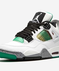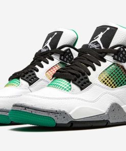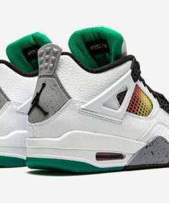Its no coincidence that the womens Air Jordan 4 Retro Lucid Green Rasta (W) features the colors of the Jamaican flag??black, green, and bright yellow. Nike released the Jordan 4 Retro Lucid Green Rasta (W) in 2020 to celebrate the annual Jamaican Carnival festival. This shoe features vibrant gradients that blend red into yellow and yellow into green. Hard mesh, white leather, and a textured sole create an image of a tough, sturdy shoe thats ready to hit the streets.