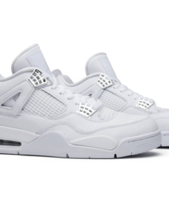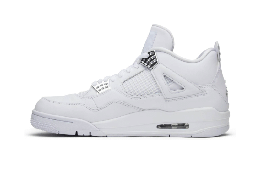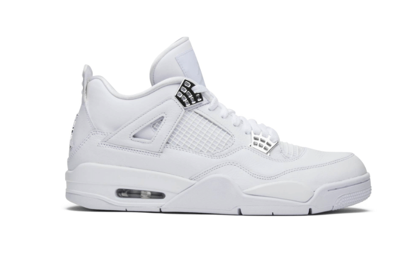 Talk about pristine! Jordan Brand reintroduces fans to the?Air Jordan 4?in the icy all-white?Pure Money rendition. Originally released in 2005, and again in 2010 under the 25th-anniversary moniker, this colorway further proves that simple is often better. Released just in time for spring/summer 2017, the AJ 4 sports a clean leather upper in white, with mesh netting and Air Jordan branding on the tongue to match. Metallic Silver appears on the lace eyelets, along with a chrome Jumpman logo on the heel to complete the look.