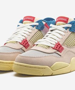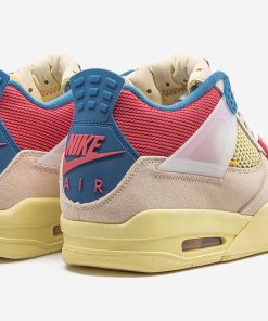 The Air Jordan 4 Union Guava Ice features many new elements never seen before on the silhouette. The most notable addition comes in the form of a foldable nylon tongue, showing off the Air Jordan logo traditionally stitched on the tongues backside. From there, hits of Guava, Fusion Red, and Brigade Blue make this Air Jordan 4 one of the more colorful releases for the model.