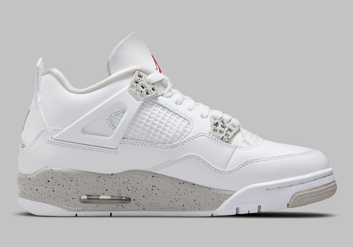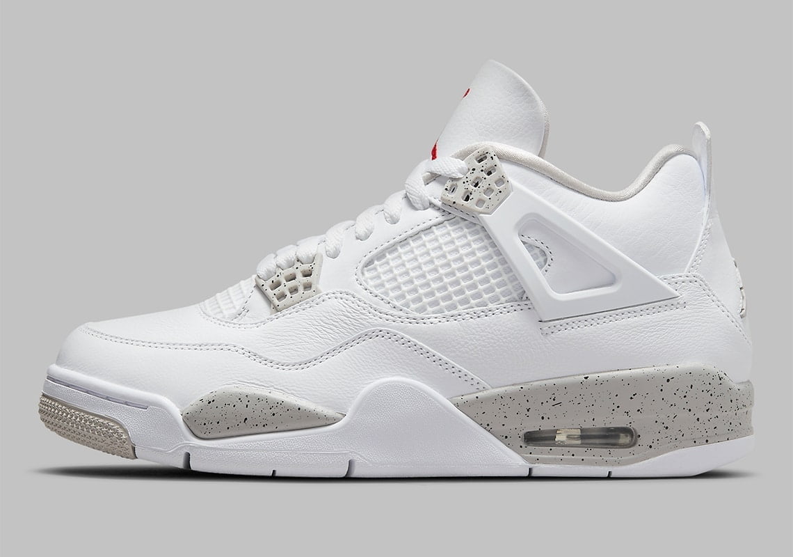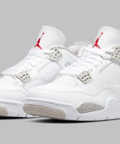 Just like other Jordan 4 versions, the shape of this shoe is kept the same. At first glance, you can already see a striking white color covering the whole shoe. All are crafted from premium leather, OG mesh, and some signature plastic eyelets. The upper leather parts are meticulously cut, creating the main lines for the shoes.