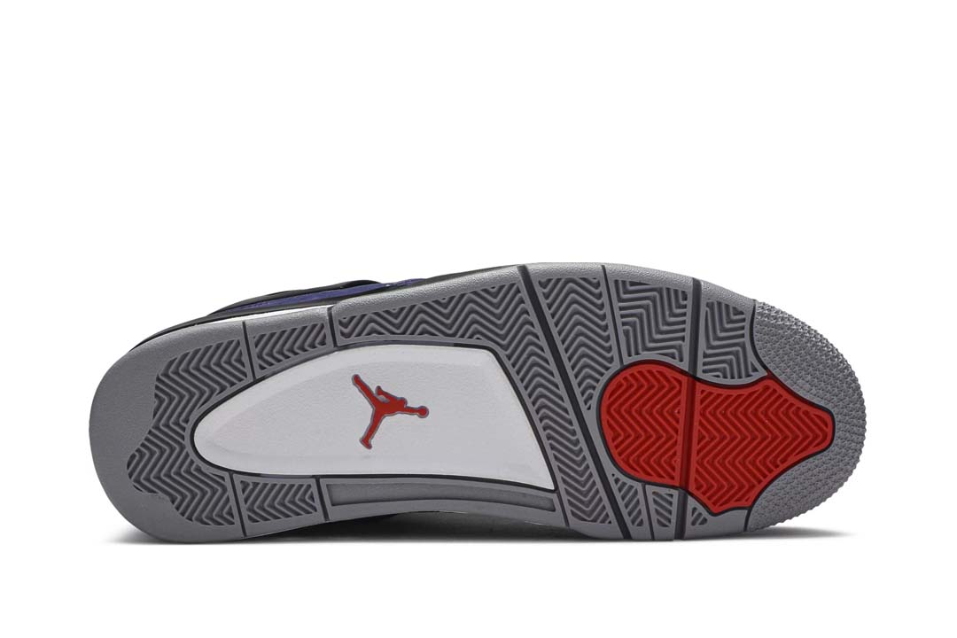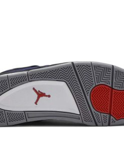 This Jordan 4 Retro is comprised of a loyal blue upper with red accents. Grey and black detailing, a white midsole, and a grey outsole complete the design.
