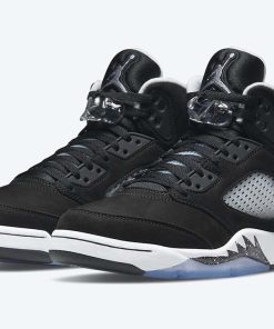 The Air Jordan 5 Moonlight arrives looking identical to the original 2013 Jordan 5 Oreo. It features a black Durabuck upper with translucent netted inserts and grey embroidered Jumpman logos on the tongue. From there, a white midsole with black speckled shark teeth and an icy translucent sole brings a contrast to the monotone upper.The Air Jordan 5 Moonlight released in September of 2021