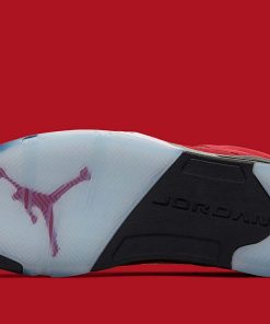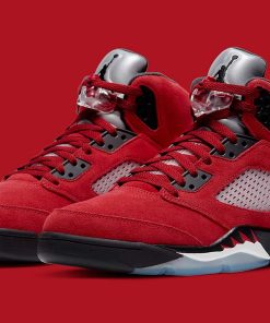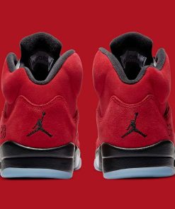 The Air Jordan 5 Raging Bulls is a suede lovers dream, bringing back the same look and feel from the 2009 version. The upper is composed entirely out of red suede, celebrating MJs tenure with the Chicago Bulls. From there, a red and black embroidered “23 appears on the lateral side of each shoes heel, highlighting Jordans quintessential jersey number. In usual Jordan 5 fashion, the upper part of the tongue is made of reflective materials with a contrasting black Jumpman logo. Lastly, the models World War II fighter jet inspiration is made apparent from the white and red shark tooth details that lay atop a black midsole.