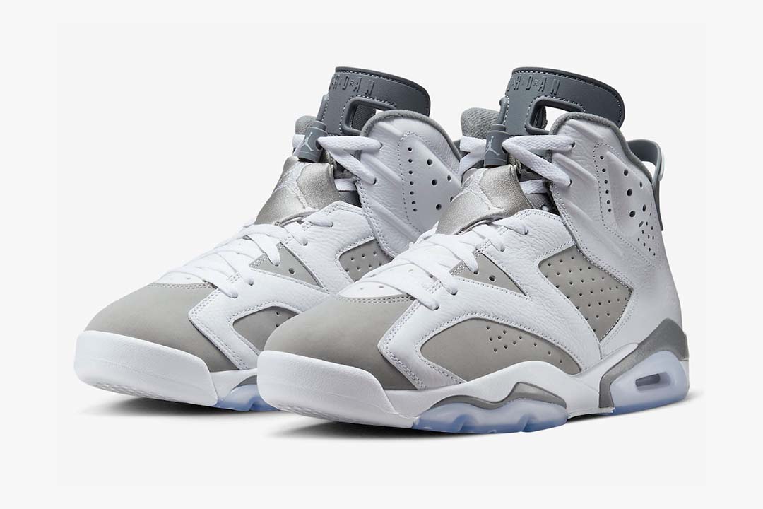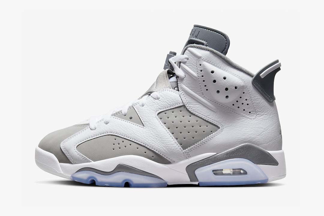 The retro is expected to don a White/Medium Grey/Cool Grey mix borrowed from 2001s Air Jordan 11 Cool Grey, a sneaker last seen in 2021. The shoes follow a similar color-blocking arrangement as the original Carmine pair, with smooth White leather making up most of the upper. Softer fabric, then, enters the mix at the toe and across profile underlays with the Jumpman-branded shroud at the tongue also following suit. Sports car-inspired tops of the tongue and clips at the heel indulge in a varying shade of grey, but match the detailing across the midsole (and presumably the outsole). Lastly, semi-translucent traction zones underfoot deliver an icy blue finish that promises freshness for years to come.