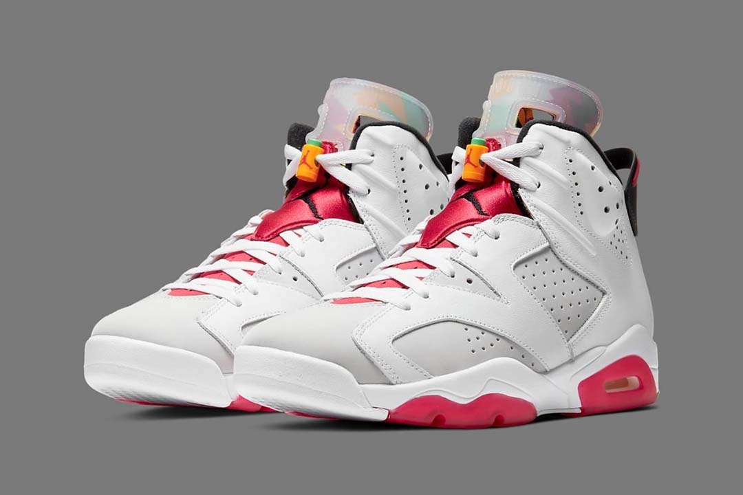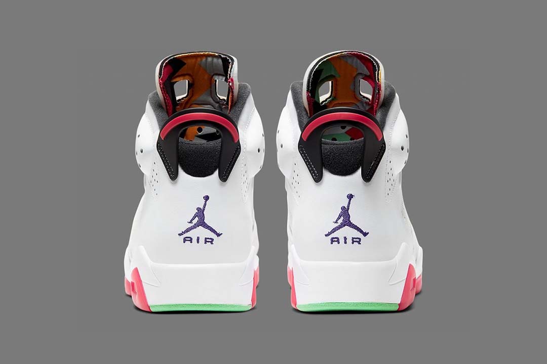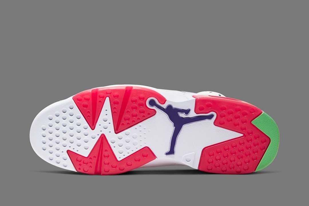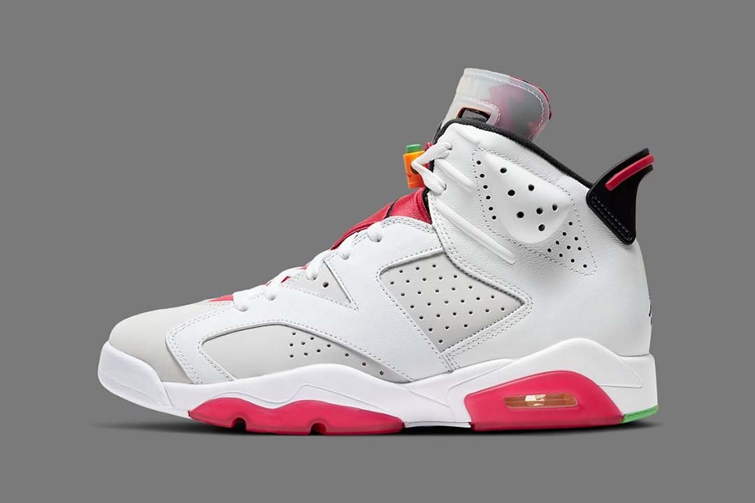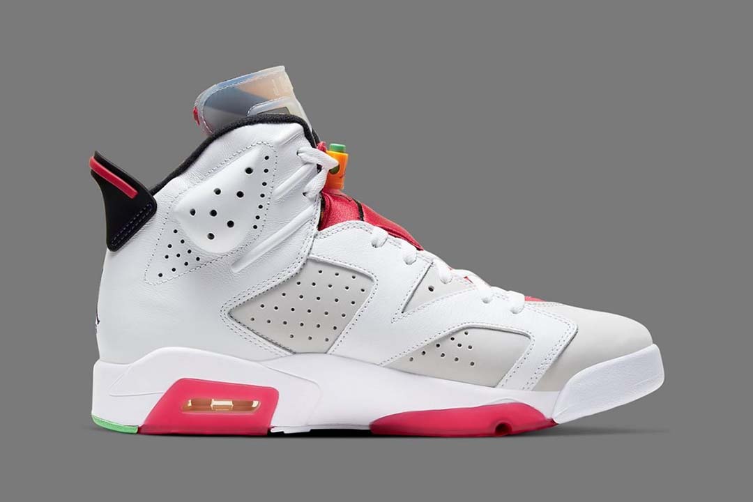 The Air Jordan 6 Retro ‘Hare delivers an understated take on the classic silhouette with a championship pedigree. Monochromatic grey coloring is applied to the suede upper, appointed with traditional AJ6 details that include lace locks, perforated inlays and an extended spoiler at the heel. A two-tone midsole, finished in contrasting white and True Red tones, is supported by a translucent rubber outsole underfoot.