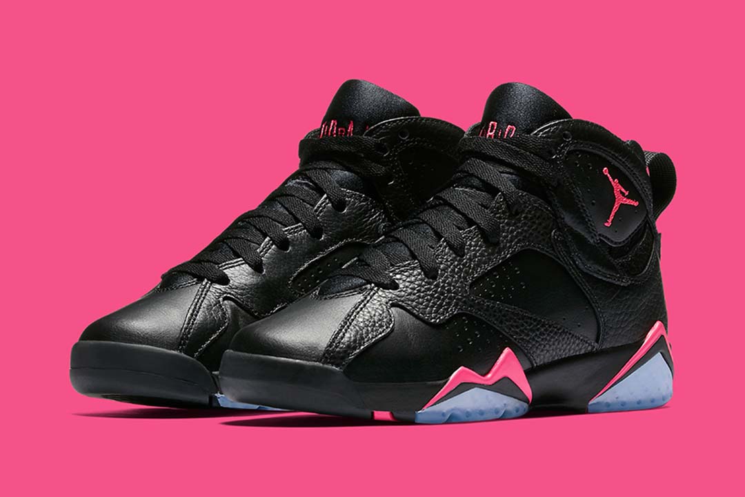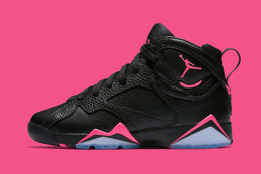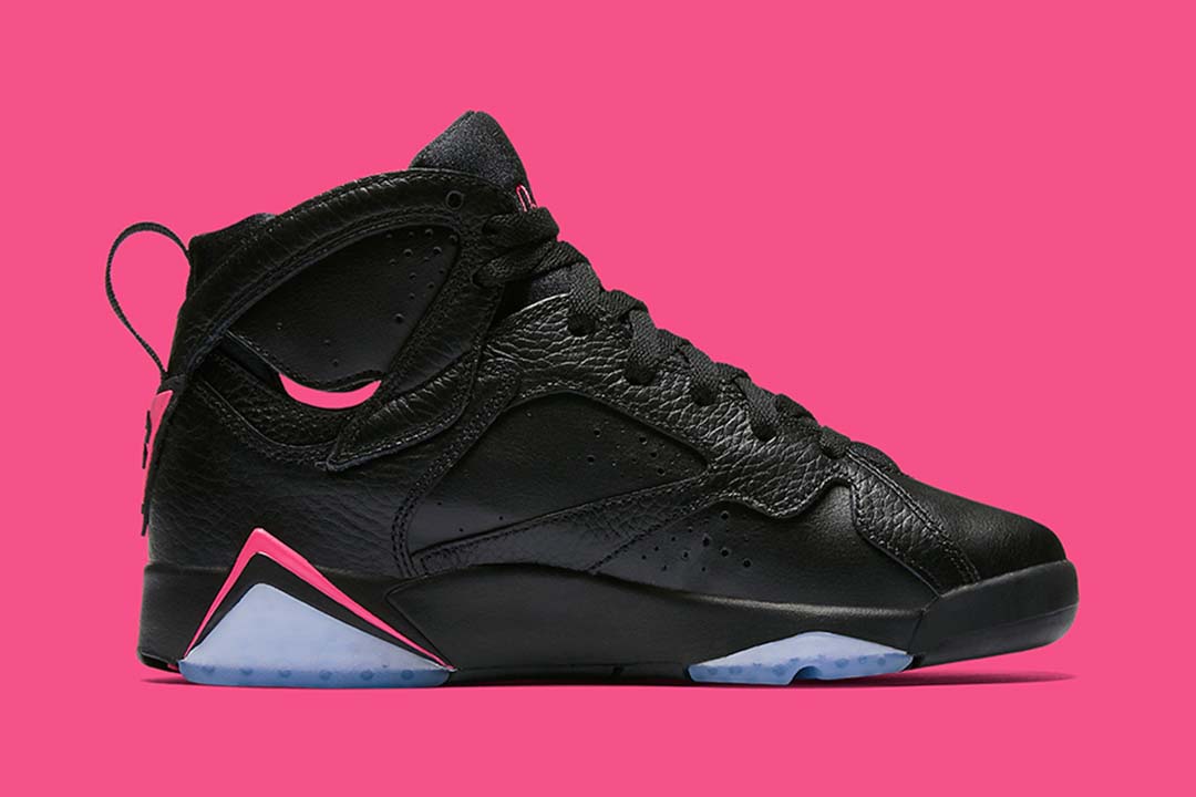 Similar to the ‘Bred makeup, the Air Jordan 7 Retro GG ‘Hyper Pink emerges with a combination of smooth and tumbled leather panels throughout the upper. The midsole accents, Jordan and Jumpman branding appear in Hyper Pink as opposed to the traditional red tones. The shoe implements a heel loop for easy on and off, and the outsole incorporates an icy hue for a throwback look.