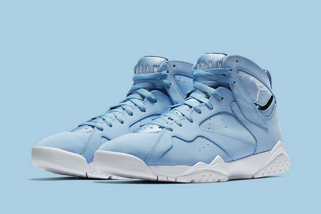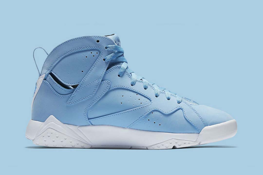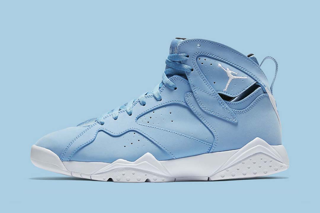 Part of a sample collection during the 2010 World Basketball Festival, the Air Jordan 7 ‘Pantone generated enough heat that Nike released it to the public in the spring of 2017 as part of Jordans Summer 17 lineup. The ‘University Blue color is an homage to Jordans college days as a North Carolina Tarheel. Utilizing premium materials as part of Nikes ‘Remastered construction, the shoe features a monochromatic nubuck upper and traditional Air Jordan 7 branding elements on the tongue, ankle, and heel. Also included in Jordans Summer 2017 lineup are the Air Jordan 11 Low ‘University Blue, Air Jordan 7 ‘University Blue, Air Jordan 13 Low ‘Brave Blue, Air Jordan 5 Premium, Air Jordan 1 High Decon in both pink and blue colorways, Air Jordan 13 Low ‘Chutney, and the Air Jordan 11 Low ‘Barons.