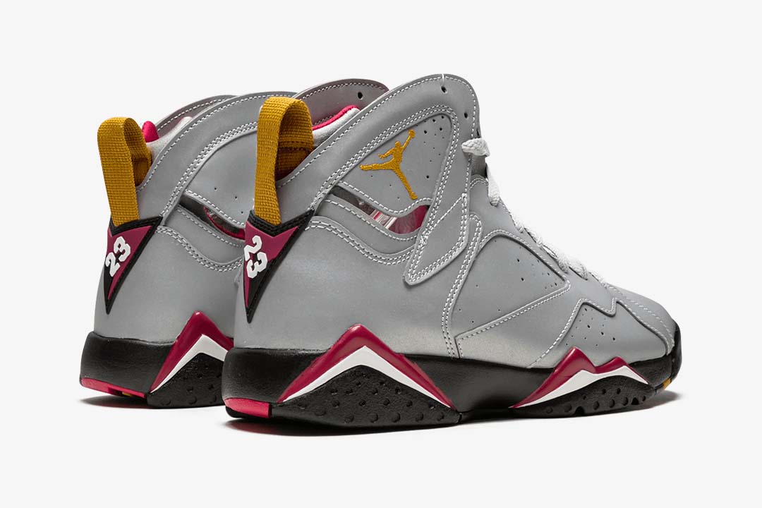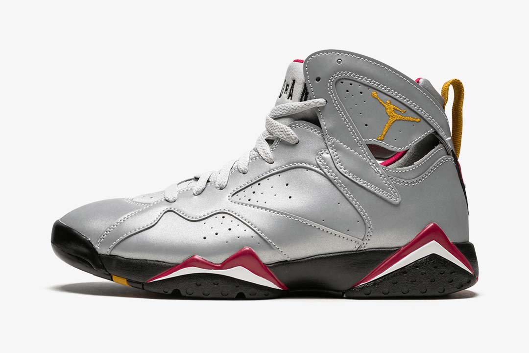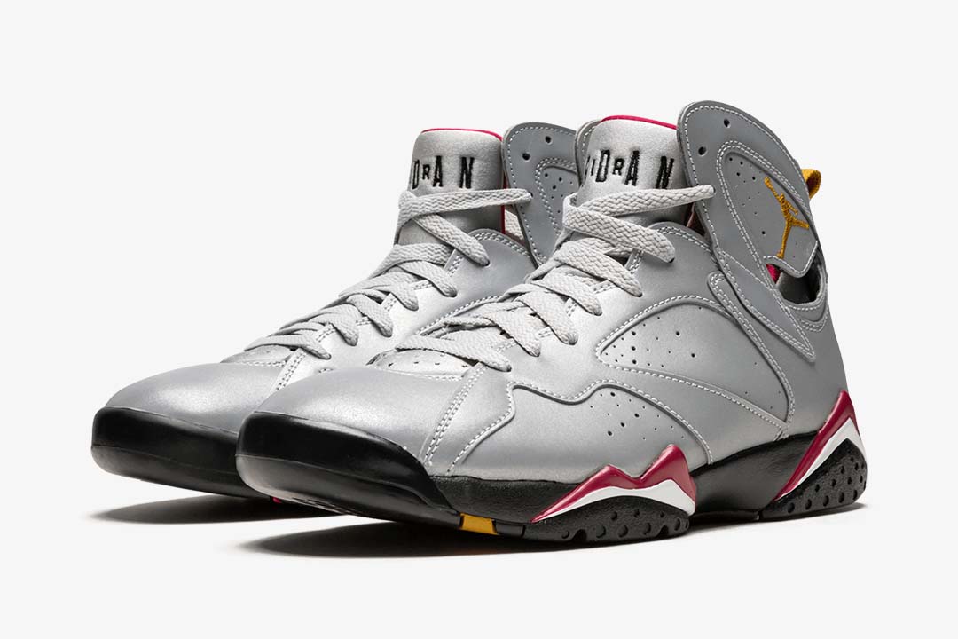 The June 2019 release of the ‘Reflections Of A Champion pack is a tribute to Michael Jordans legendary 1991-1993 championship run with the Chicago Bulls. Each design represents a signature shoe he wore during those victories. Taking the Jordan 7 that MJ wore during his 1992 season, the Air Jordan 7 Retro SP sneaker alters its upper by completely wrapping it in 3M reflective materials, but still keeps the OG colorway in its accents.