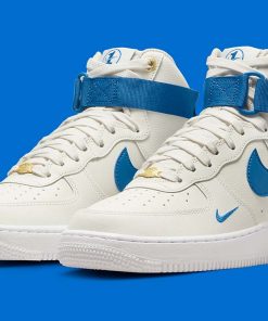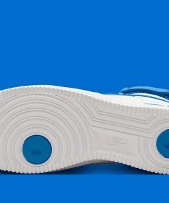 Crafted specifically in the direction of the silhouettes 40th Anniversary, has appeared with a batch of new details. While the construction stays true to the 1982 classic, this AF1 High has some thoughtful touches that you might miss the first time around. Arriving in a sail and blue colorway, this Air Force 1 High stamps the heel with a 40 surrounded by stars ?? a nod to the outsole traction of the shoe. Miniature checks sit at the forefoot in its traditional seat, while a golden eyelet appears at the very top of the collar. Inside, the insignia of the shoes prime architect Bruce Kilgore is embroidered onto the inner side, while the 82-22 mark sits at the insole.