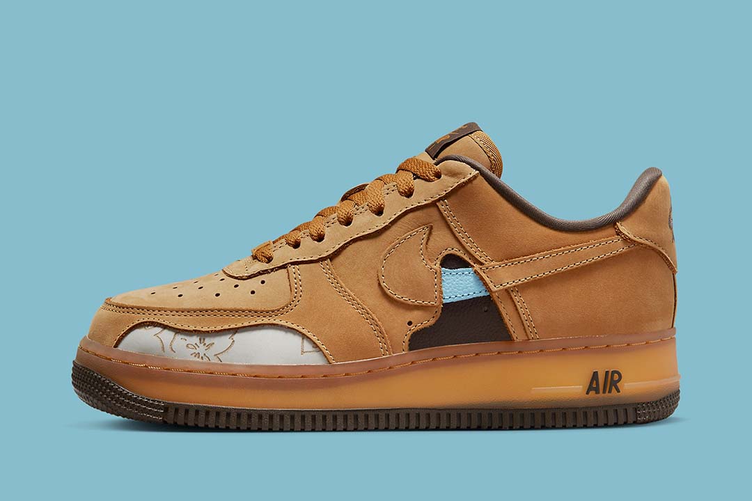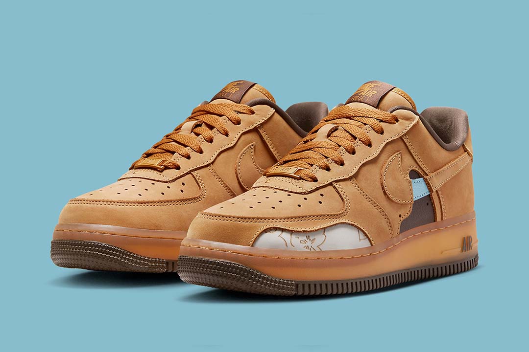 Nike has pushed themselves creatively throughout the better part of the Air Force 1??s 40th Anniversary, stretching the limits of whats possible with its design. And earlier this Fall, the Swoosh took a knife to Bruce Kilgores beloved creation, cutting into and replacing parts of its construction. Fast forward just a little over a month and the brand is once again setting the silhouette down on the operating table, though this time theyve selected the Wheat Mocha colorway as their cadaver. Among a sizable collection of CO.JP legends, the Wheat Mocha originally made headway in the early 2000s before being brought back in 2020. The latter is what serves as the base here ?? and save for the sections removed, this pair is extremely faithful to its source material, delivering Wheat suede uppers, Mocha accents, and opaque sidewalls. Only the cut-outs across the forefoot and mid-panel differentiate this release from the OG, doing so not just with the incisions themselves but also the floral-patterned and blue-Swooshed fragments used as patchwork.