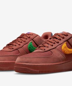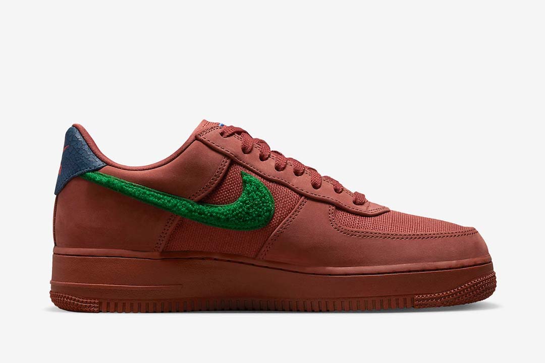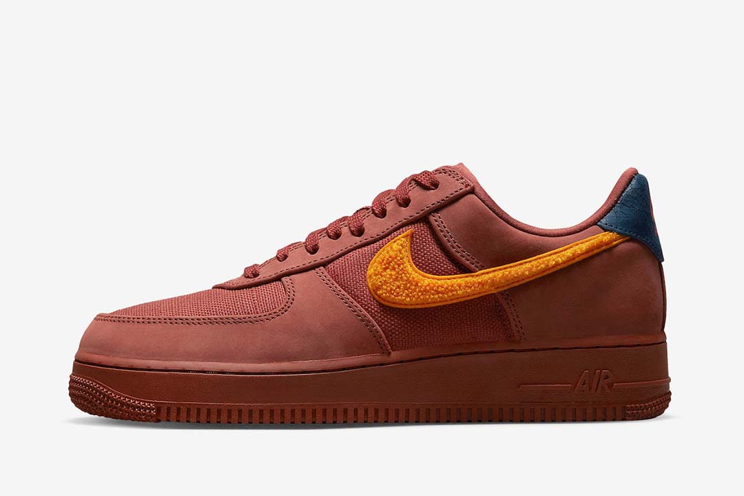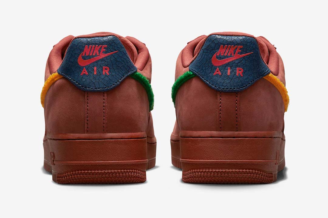 This Nike Air Force 1 Low feature a Redstone and Del-Sol color combination. However, there is much more to this special pair. Constructed with various materials like canvas textile (base), suede (overlays), and cracked leather (heels). Both Orange and Green appear on the chenille Swoosh logos, and the ??We Are Familia patch lands on the left tongue. Lastly, a special graphic is used on the insoles.