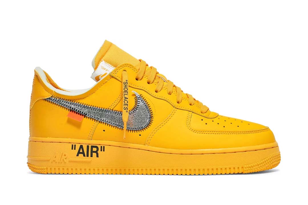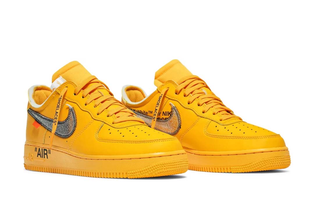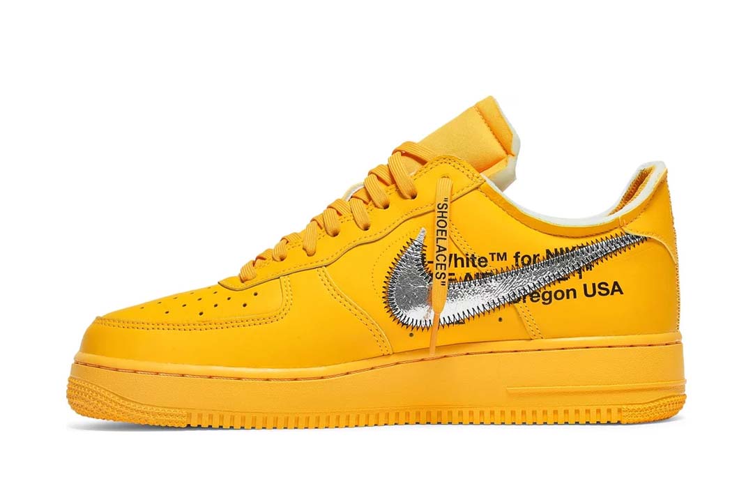 In celebration of Virgil Ablohs Figures of Speech exhibition opening at the ICA Boston in 2021, Nike and OFF-WHITE teamed up to launch a new Air Force collaboration with the Nike Air Force 1 OFF-WHITE University Gold Metallic Silver.