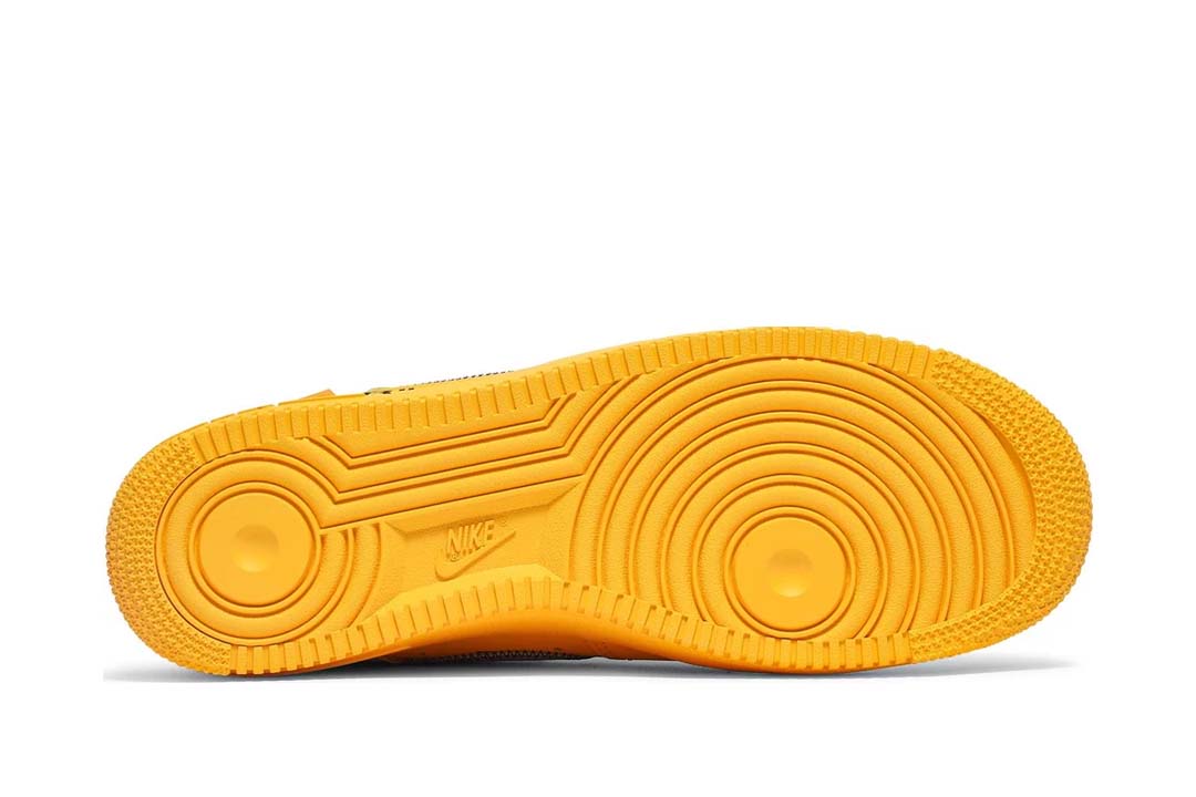 The Nike Air Force 1 OFF-WHITE University Gold Metallic Silver released in July of 2021 and retailed for $150.