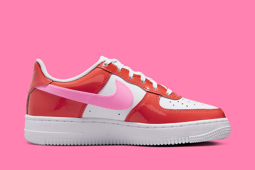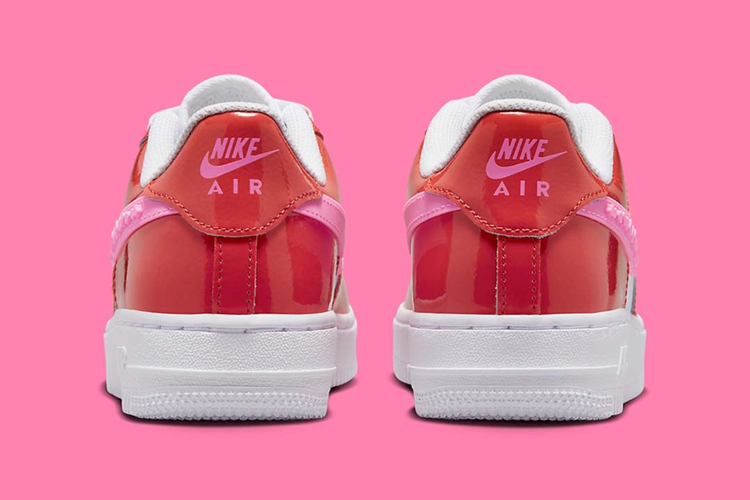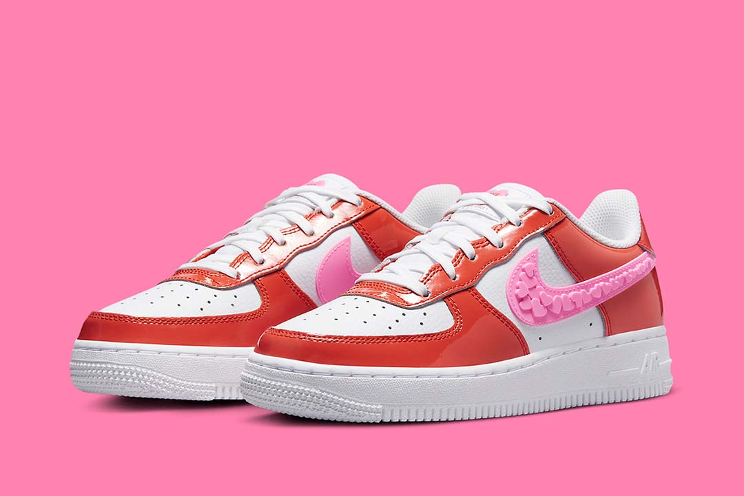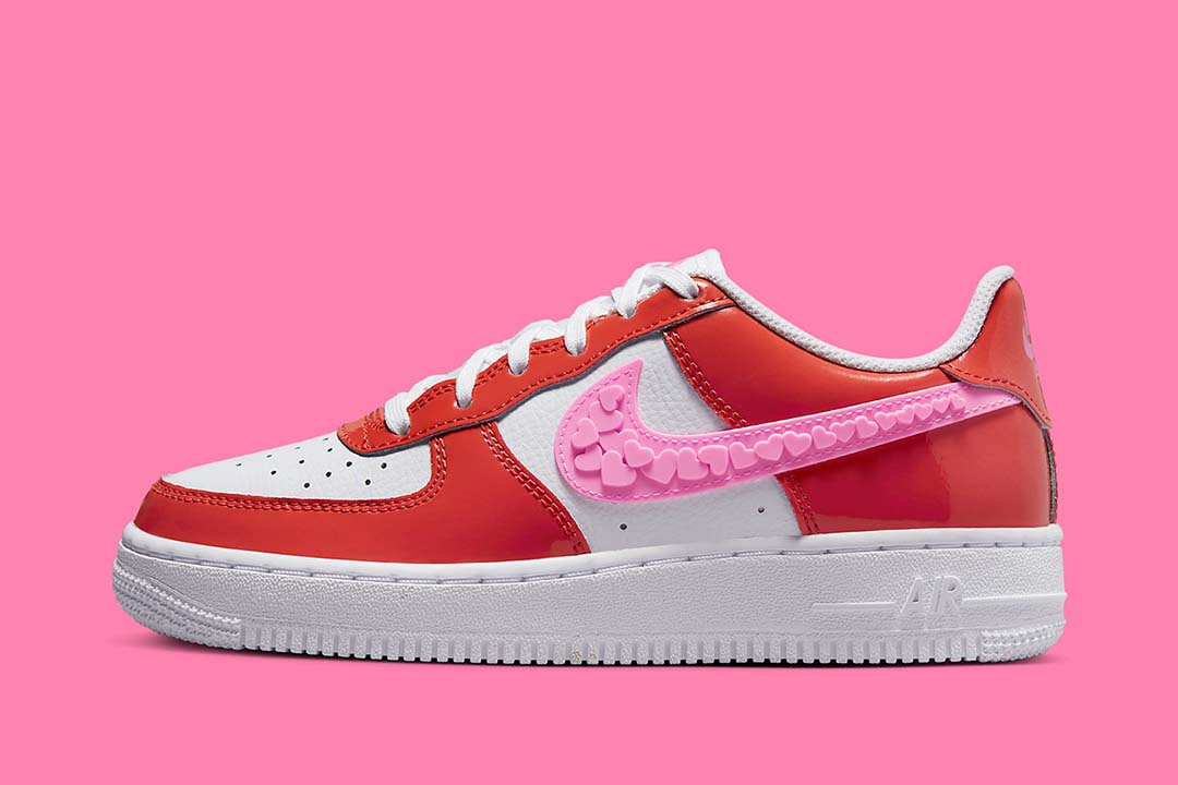Valentines Day ?? much like Cyber Monday and Black Friday ?? has quickly become a sneakerheads holiday, with many less interested in finding love and more keen on the occasions several commemorative offerings. For 2023, this includes a drove of new styles from Nike, ranging from pink-Swooshed Dunk Lows to heart-adorned Air Force 1s, the latter of which just surfaced via official images. Though first unveiled in TD sizes, its likely the colorways PS, GS, and Adult counterparts are sure to incorporate many of the same design elements. Among these, the Swoosh is certainly the most standout, its pink-toned TPU covered with raised hearts from end to end. Additional instances of said symbol are also applied to the tongues, the left and right of which feature AF1 and LOVE text, respectively. Elsewhere, the shoe is much more simple, though it maintains the Valentines Day theme by way of red patent leather overlays.