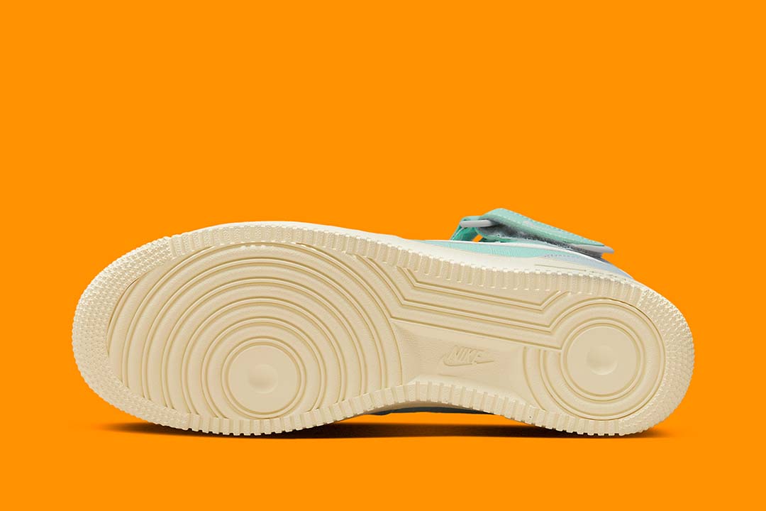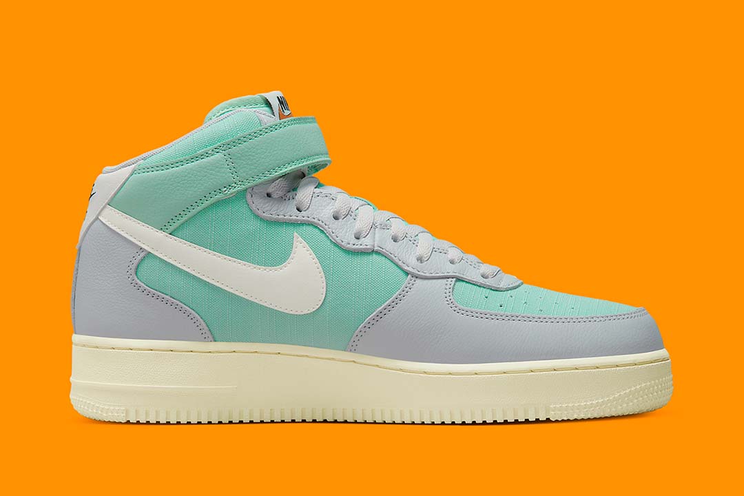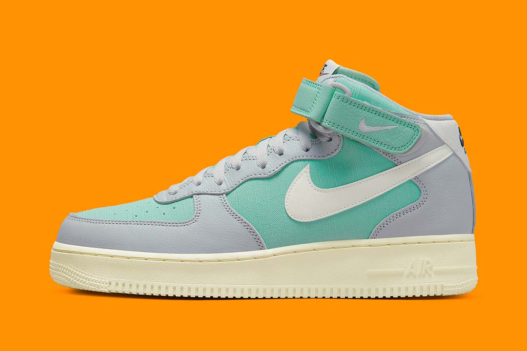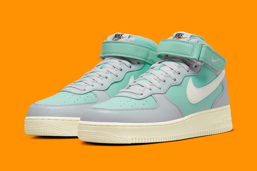 Nike has stamped Certified Fresh on select Air Force 1s, many of which have proffered bright, Summer-appropriate colors. This newest iteration of the Air Force 1 Mid is certainly no exception, as it ushers in the season in Enamel Green. The Swooshs penchant for vintage offerings can be felt even here, as the midsole is clad in a Sail shade. Above, though, the construction is far more contemporary, complementing the Enamel Green canvas with Grey Fog, the latter of which appears blue across both the leather overlays and laces. Additional instances of the aforementioned green can be found along the strap and tongue, framing the Alpha Orange check thats mixed in with the tongue labels usual, neutral-colored branding.