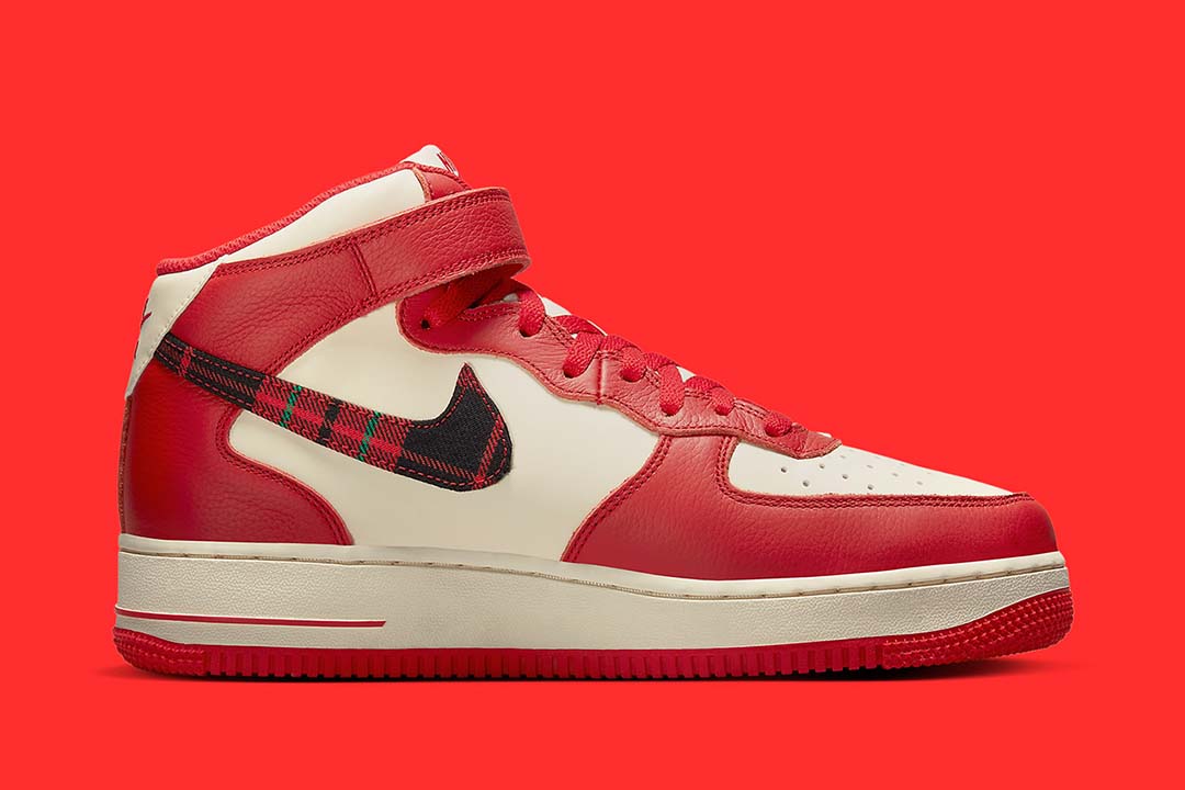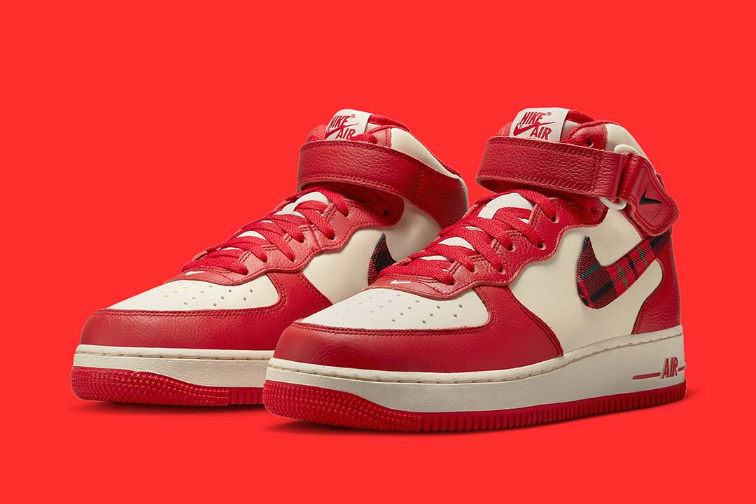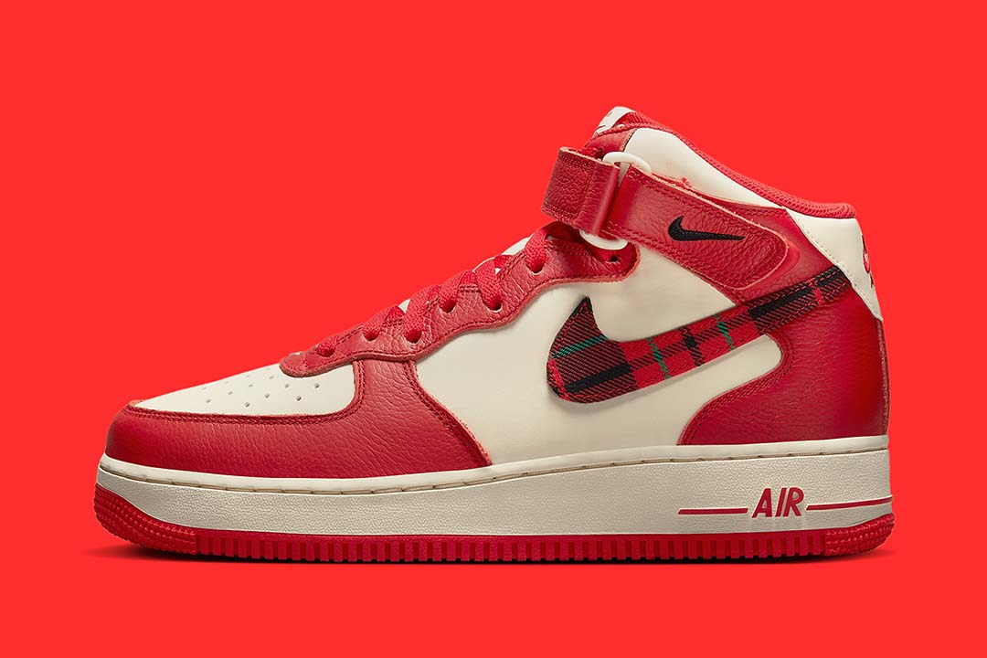 From Tartan to Blackwatch, plaid is near synonymous with the Fall. And now that the season has officially arrived, everyone is bringing out their collection of flannels. Nike, too, has recently fallen back in love with the pattern, as its appeared across a drove of new offerings ?? the Nike Air Force 1 Mid included. This year, Nike is taking a more tasteful approach to the above-mentioned pattern. Rather than apply it all throughout the Air Force 1 Mid, the brand has opted to keep it constrained to the lateral and medial Swoosh. The logos red-dominant palette, which features stripes of black as well as green, play into the rest of the colorway, which features a cream base and layers of red tumbled leather.