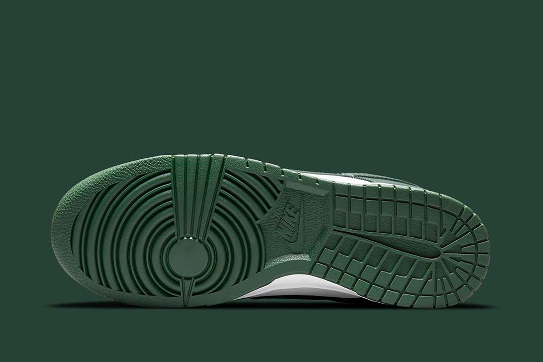 The Nike Dunk Low Spartan Green GS has as two dominant hues, the varsity green and white.
