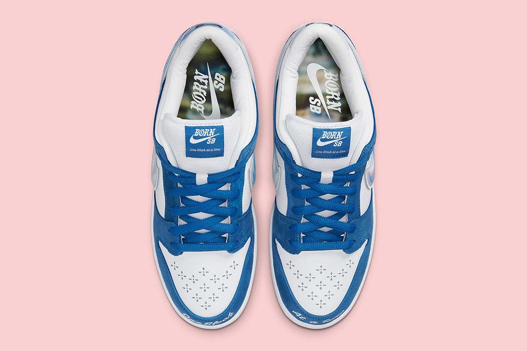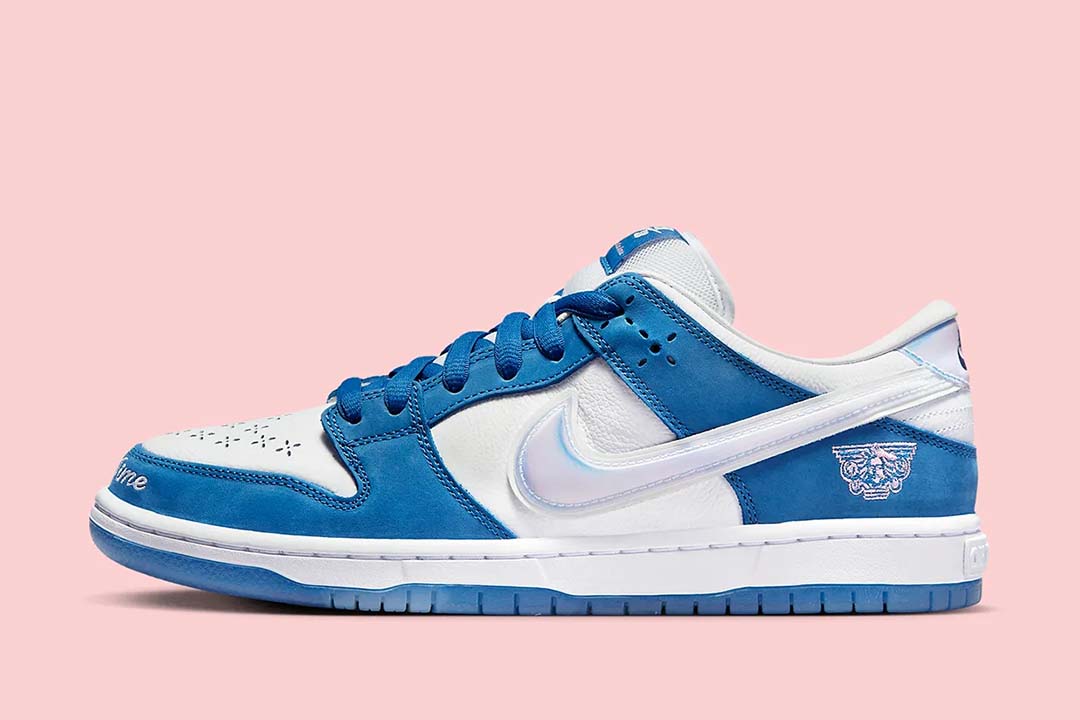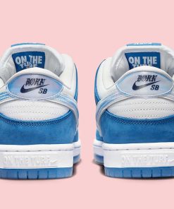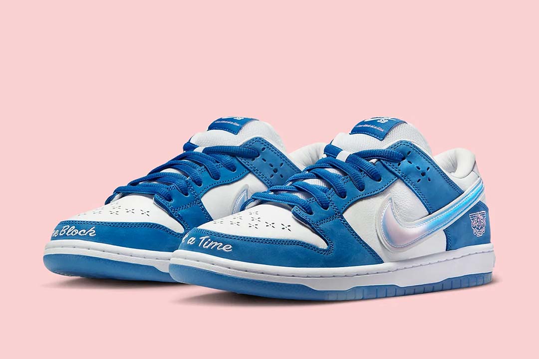 Introducing the Born x Raised One Block At A Time Nike SB Dunk Low, showcased in a Deep Royal Blue and White colorway.